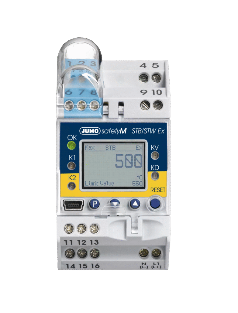 JUMO safetyM STB/STW Ex on turvalämpötilarajoitin ja -valvontalaite, joka on kehitetty erityisesti räjähdysvaarallisiin (Ex) tiloihin lämpötilan turvalliseen valvontaan ja ohjaukseen.