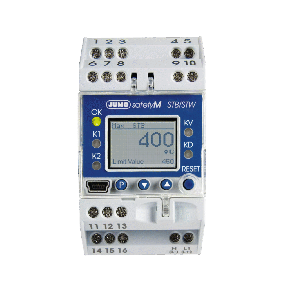 JUMO safetyM STB/STW on turvalämpötilarajoitin ja turvalämpötilavalvontalaite, joka on suunniteltu lämpöteknisten prosessien turvalliseen seurantaan ja ohjaukseen.