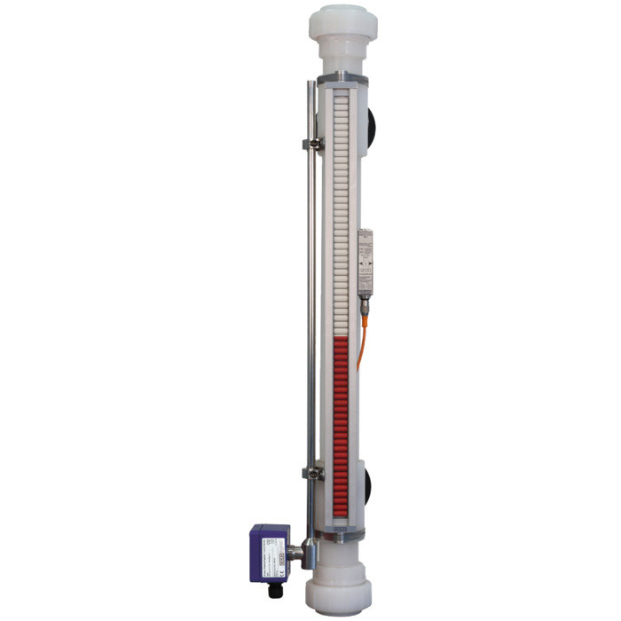 • BNA-P muovinen bypass level indicator magneettinäytöllä – PVDF/PP-ohituskammio ja muovikoho, max 6 bar, PVDF -10…+100 °C / PP -10…+80 °C, laaja liitäntävalikoima ja optiot pintalähettimille sekä magneettikytkimille.